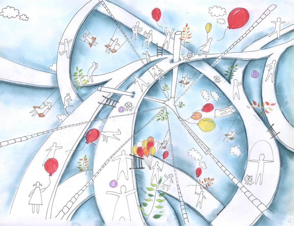 - 《Finding NeverLand》(2012年樹屋競圖,第4名):將「動態」轉譯為「玩樂」,運用輕量化結構和連動機制,創造一個鼓勵追逐與探索的兒童遊戲空間。